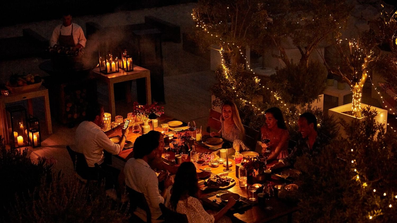 Entre sesiones, el retiro encuentra el equilibrio ideal entre el cuidado y la restauración. Nutrirás tu cuerpo con productos locales, resetearás tu mente con el Biohacking avanzado de Six Senses y descubrirás la belleza oculta de la costa ibicenca. Al caer la tarde, el ambiente se vuelve social: desde la sofisticación del menú Omakase en Nobu hasta las sobremesas relajadas en Chambao. Cada instante es una celebración de tu propia fuerza.
