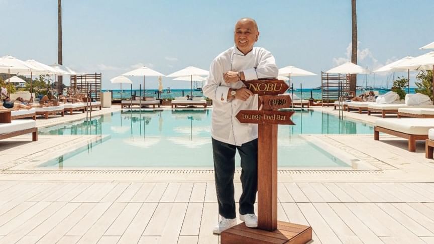 Para ser uno de los chefs más reconocidos a nivel global y propietario de uno de los grupos hosteleros más importantes del mundo, el aspecto y la actitud de Nobu Matsuhisa (Saitama, Japón, 1949) es la de un hombre normal, sencillo y risueño cuyos gestos transmiten paz y tranquilidad. Cada uno de sus movimientos es seguido, desde la discreción, por sus inseparables Andrew Milne (director de operaciones de Europa y Reino Unido) e Hiro Tahara (director de operaciones de Nobu a nivel mundial), que, como él, no pierden en ningún momento la sonrisa. Recientemente ha visitado uno de sus restaurantes en España, Nobu Ibiza, en el Ibiza Bay Hotel, y hasta allí nos hemos desplazado para disfrutar de una agradable conversación donde nos ha hablado de cocina y sobre lo que más le gusta de nuestro país.